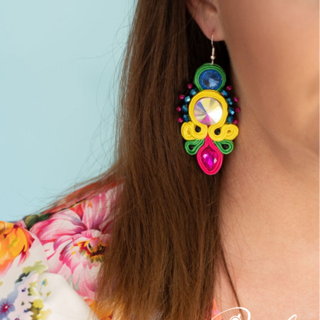 Kézzel varrt, pillekönnyű, vidám ékszerek stílusos nőknek – gyöngyök, csillogó kristályok és selyemzsinór felhasználásával.