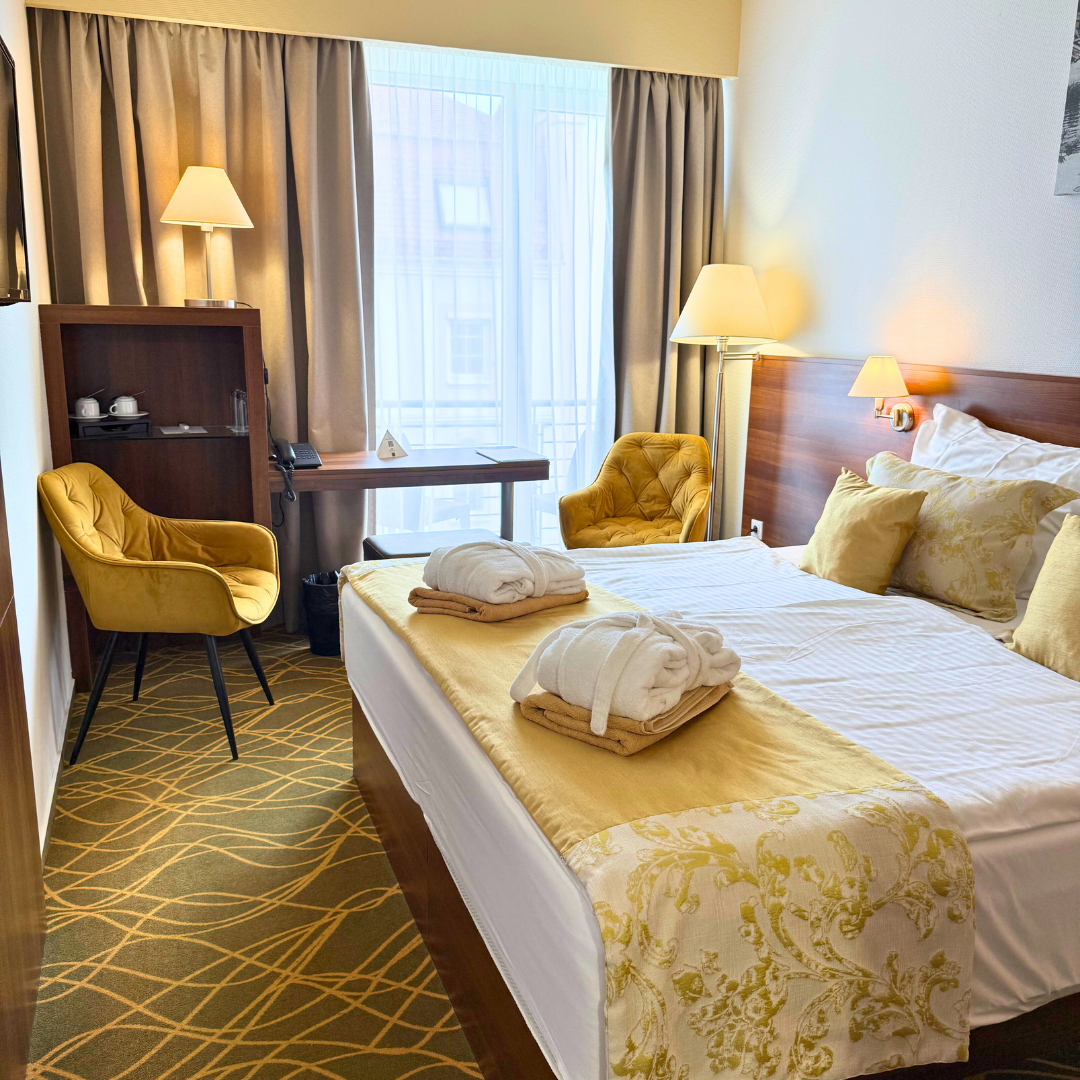 Napi áraink folyamatosan változnak a foglaltságtól függően, de ez most rád nincs hatással. Időszaktól és telítettségtől függetlenül 40% kedvezményt biztosítva, most fix 79.900 Ft áron foglalhatod le szállásod a kuponkód felhasználásával. Nincs szobafelár, akár a standard szobától az executive szobáig szabadon választhatsz, igényeidnek megfelelően.