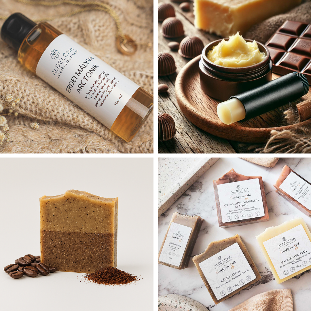 Az Aldeléna Natúrkozmetikumok a természet tisztaságát és erejét egyesítik a kézműves gondoskodással. Minden termékünk kizárólag növényi alapanyagokból készül, mesterséges adalékok és pálmaolaj nélkül. Hiszünk abban, hogy a bőrápolás nemcsak külső, hanem belső harmónia is – ezért termékeink egyszerre kényeztetik a testet, a lelket és az érzékeket.